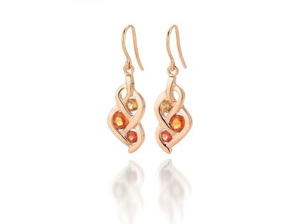Ohrschmuck aus 750/- Rotgold, poliert, mit 6 facettierten bunten Saphiren zusammen 1,90ct
