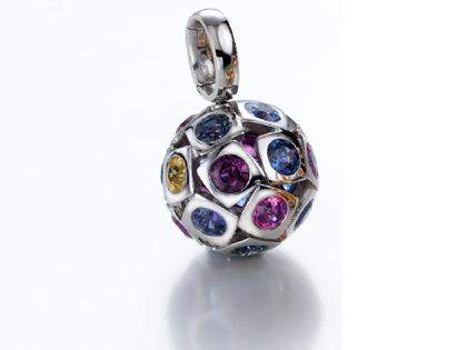 A. Odenwald Tango Kugel Anhänger Weißgold mit farbigen Saphiren