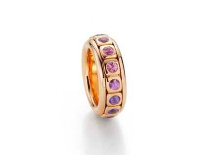 A. Odenwald Tango Ring mittlere Breite Rotgold mit farbigen Saphiren, drehbar