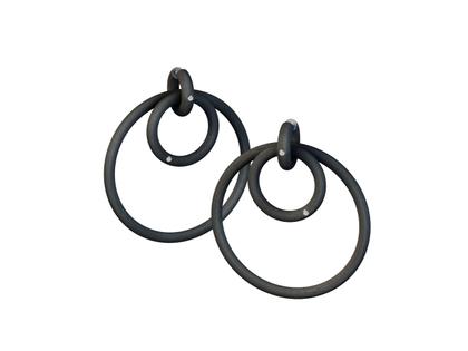 Ohrschmuck aus schwarzem Kautschuk, elastisch und leicht, Creole mit je 2 Einhängern - kleiner Ring im Durchmesser von 28,0 mm mit 1 Brillant 0,010 ct W si in Zargenfassung aus 750/- Weißgold, großer Ring im Durchmesser von 58,0 mm ohne Besatz, Stärke 4,0 mm, Steckverschluss