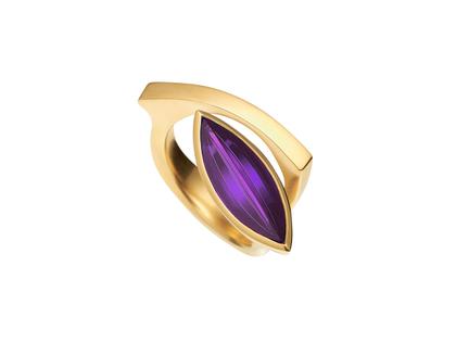 Angela Hübel Lagune Ring Gelbgold mit Amethyst in Navetteform