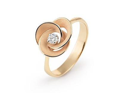 Ring aus 750/- Gold in der Farbe Orange Apricot, poliert und mattiert, mit 1 Brillant 0,100 ct TW vsi