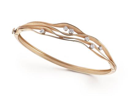 Armreif 750/- Gold (Orange Apricot), poliert und satiniert, 6 Brillanten zusammen 0,37 ct TW vsi