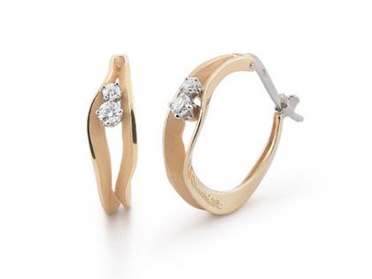 Creolen 750/- Gold (Orange), poliert und satiniert, 2 Brillanten zusammen 0,48ct. TW vsi