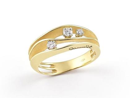 Ring geschwungen, 750/- Gelbgold Yellow Sunrise, 3 Brillanten 0,19 ct TW vsi