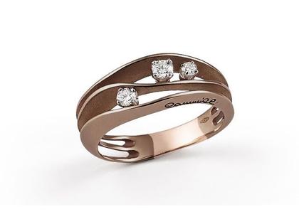 Ring aus 750/- Gold in der Farbe Brown Chocolate, poliert und satiniert, mit 3 Brillanten zusammen 0,19 ct TW vsi