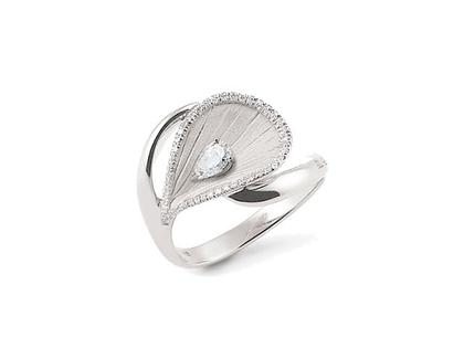 Ring aus 750/- Gold in der Farbe White Ice, poliert und mattiert, mit 1 Diamant im Tropfenschliff und Brillanten zusammen 0,310 ct TW vsi
