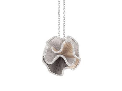 Cammilli Firenze Sultana Kette mit Anhänger Tricolor White Ice, Black Lava und Natural Beige Gold 45cm mit Brillanten 0,570ct