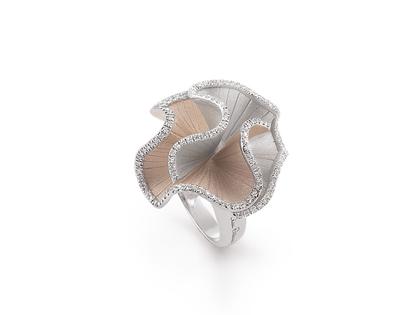 Cammilli Firenze Sultana Ring Bicolor White Ice und Natural Beige Gold mit Brillanten 0,530ct
