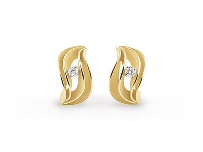 Ohrschmuck aus 750/- Gold in der Farbe Yellow Sunrise, poliert und satiniert, mit 2 Brillanten zusammen 0,120 ct TW vsi