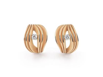 Ohrschmuck aus 750/- Gold in der Farbe Orange Apricot, poliert und satiniert, mit 2 Brillanten zusammen 0,140 ct TW vsi