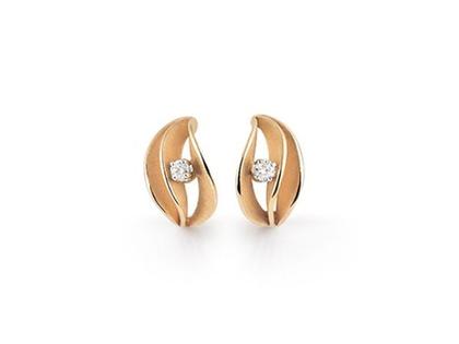 Ohrschmuck aus 750/- Gold in der Farbe Orange Apricot, poliert und satiniert, mit 2 Brillanten zusammen 0,060 ct TW vsi