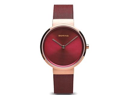 Bering 14531 Edelstahl Damenuhr rosegold rotes Zifferblatt rotes Edelstahlband