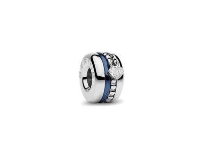 Anhänger Edelstahl poliert, Mittelring blau, mit Herz-Anhänger
