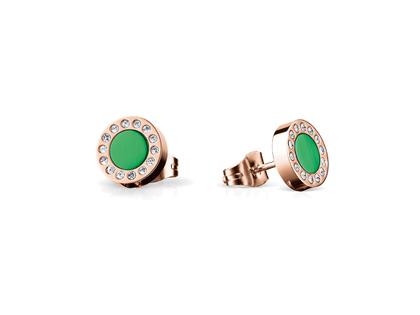 Ohrstecker aus Edelstahl rosevergoldet, Aluminium grün, weiße Swarovskisteine