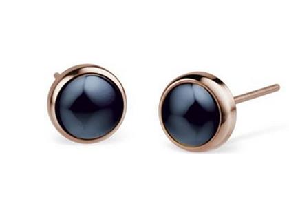 runde Ohrstecker aus Edelstahl rosé IP beschichtet mit blauer Keramik