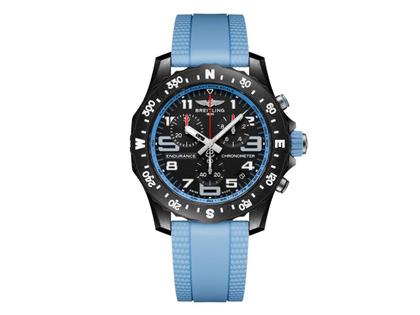 Breitling Endurance Pro 44 Chronograph Quarz Breitlight schwarzes Zifferblatt blaues Kautschukband