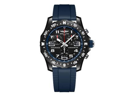 Breitling Endurance Pro 44 Chronograph Quarz Breitlight schwarzes Zifferblatt blaues Kautschukband
