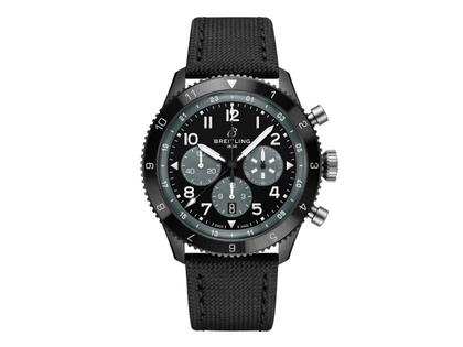 Breitling Super Avi B04 Chronograph GMT 46 Mosquito Night Fighter Automatik Keramik schwarzes Zifferblatt schwarzes Textilband