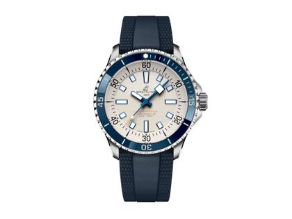 Breitling Superocean Automatic 42 Edelstahl weißes Zifferblatt blaues Kautschukband