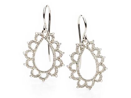 Ohrhänger aus 925/- Silber, tropfenförmiges Spitzenmuster, 36,0 mm Gesamtlänge mit Bügel
