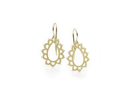 Ohrhänger aus 925/- Silber vergoldet, tropfenförmiges Spitzenmuster, 36,0 mm Gesamtlänge mit Bügel