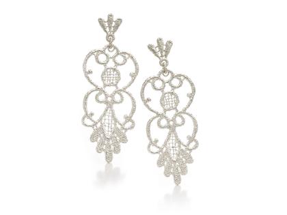 Ohrhänger aus 925/- Silber im Design traditioneller Nottinghamer Spitze, 42 cm lang