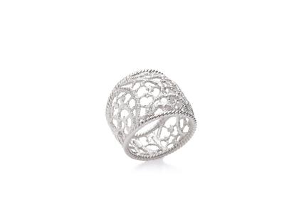 Ring aus 925/- Silber, feine Kordeln und filigrane Ornamente mit Spitzenmuster, 18mm breit im Verlauf