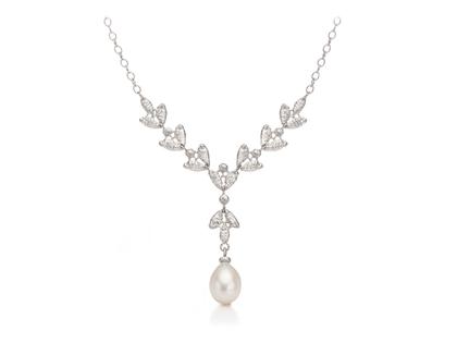 Collier aus 925/- Silber mit Süßwasserperle 8 - 8,5mm, tropfenförmig, Karabinerverschluss, 43 cm lang