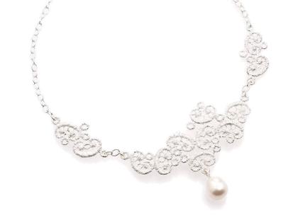 Collier aus 925/-Silber, Spitzenmuster mit 1 Süßwasserperle, 42 cm lang mit Karabinerverschluss