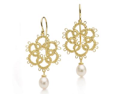 Brigitte Adolph Jewellery Design Fräulein Loreley Ohrhänger Silber vergoldet mit Perle