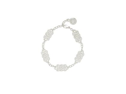 Armband aus 925/- Silber, Anhänger mit symmetrischem Spitzenmuster, Ankerkette mit Karabinerverschluss, frei verstellbar, 18,0 cm lang