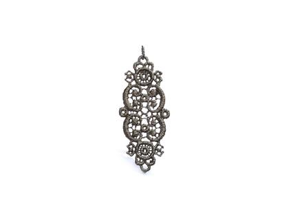 Anhänger aus 925/- Silber schwarz rhodiniert, Anhänger mit symmetrischem Spitzenmuster, 56 mm lang - ohne Halskette