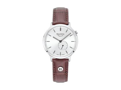 Bruno Söhnle Glashütte Bologna I Quarz Edelstahl silbernes Zifferblatt braunes Lederband