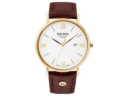 Bruno Söhnle Glashütte Nabucco römisch-Index Herrenuhr 38mm gelbvergoldet weißes Zifferblatt Lederband
