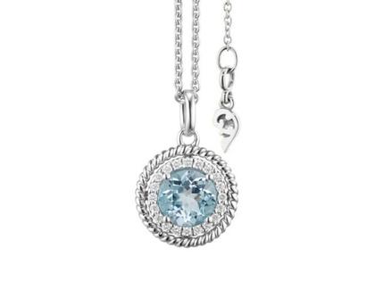 Anhänger aus 750/- Weißgold, Sky Blue Topas, Durchmesser 6 mm, ca. 1,00 ct, 20 Brillanten TW si zusammen ca. 0,08 ct