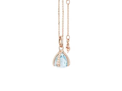 Anhänger "Capriccio" 750/- Roségold, Sky Blue Topas facettiert Ø 10,0 mm ca. 7,10 ct, 28 Brillanten zusammen ca. 0,22 ct TW vsi