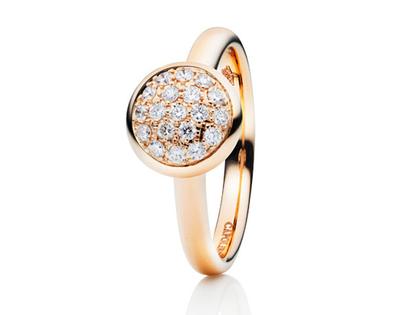 "Dolcini" Damenring aus poliertem 750/- Roségold mit 19 Brillanten zusammen 0,30 ct TW vsi