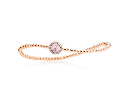 "Espressivo" Armband aus 750/- Rotgold mit 22 Brillanten zusammen 0,06 ct TW si und mit einem runden Rosenquarz Ø 6 mm ca. 0,70 ct, Innenumfang von 17 cm, handgearbeitet