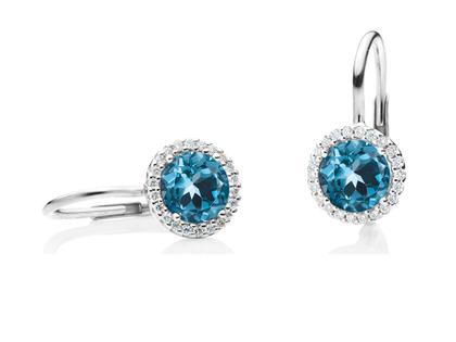 Ohrhänger "Espressivo" 750/- Weißgold, 2 London Blue Topase Ø 6.0 mm zusammen 1,80 ct, 44 Brillanten zusammen ca. 0,16 ct TW si1