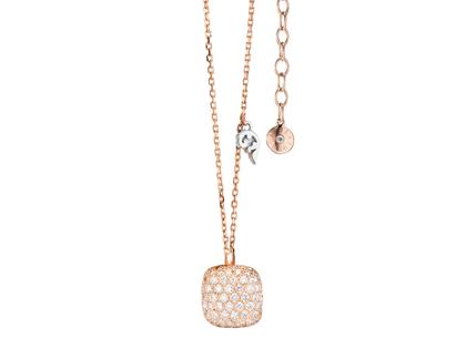 Collier aus 750/- Rotgold, 102 Brillant 0,58 ct TW vsi1, Länge 42 cm + 3 cm Verlängerung, 1 Brillant 0,01 ct TW vsi1