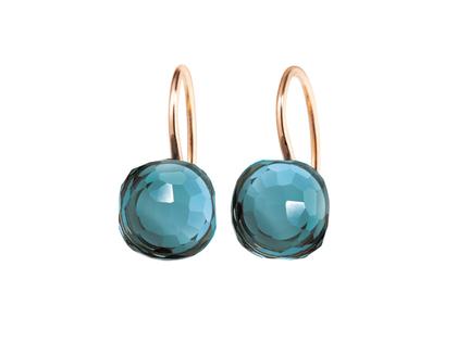 Ohrhänger aus 750/- Rotgold, Topas London blue Cabochon 9,0 x 9,0 mm facettiert, ca. 10,40 ct, mit Klappbrisur