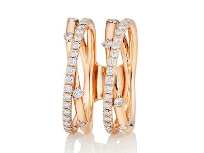 Ring "Jaquet" aus 750/- Roségold poliert, doppelte Schiene für das halten eines zweiten Ringes, 74 Brillanten zusammen 1,020 ct TW vsi