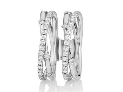 Ring "Jaquet" aus 750/- Weißgold poliert, doppelte Schiene für das halten eines zweiten Ringes, 74 Brillanten zusammen 1,020 ct TW vsi