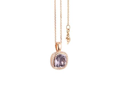 "Twinkle Balloon " Collier aus poliertem 750/- Rotgold mit 1 fliederfarbenem Amethyst im Antiken Kissenschliff ca. 2,67 ct und 28 Brillanten zusammen 0,13 ct TW vsi