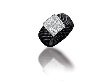 Ring, Edelstahl Milanaise schwarz beschichtet mit 750/- Weißgold und 30 Brillanten 0,43 ct TW vsi, 9 mm breit