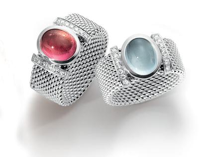 Ring Edelstahl Milanaise, rhodiniert, mit 750/- Weißgold, Brillanten 0,14ct TW vsi, rosa Turmalin