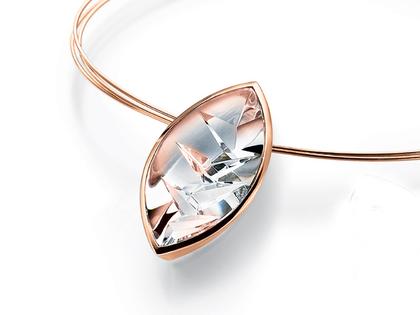 Faszination Design Edition 11: Anhänger 750/- Roségold poliert mit 1 Bergkristall Munsteiner Cut, navetteförmig