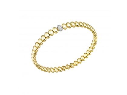 Armspange aus 750/- Gelbgold poliert, in Form von "Perl-Elementen" mit Brillanten zusammen 0,070 ct TW (G) vsi, flexibel und offen, Umfang 18 cm