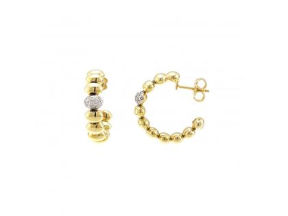 Creolen aus 750/- Gelbgold poliert, in Form von "Perl-Elementen", Brillanten zusammen 0,130 ct TW (G) vsi, mit Ohrmutter